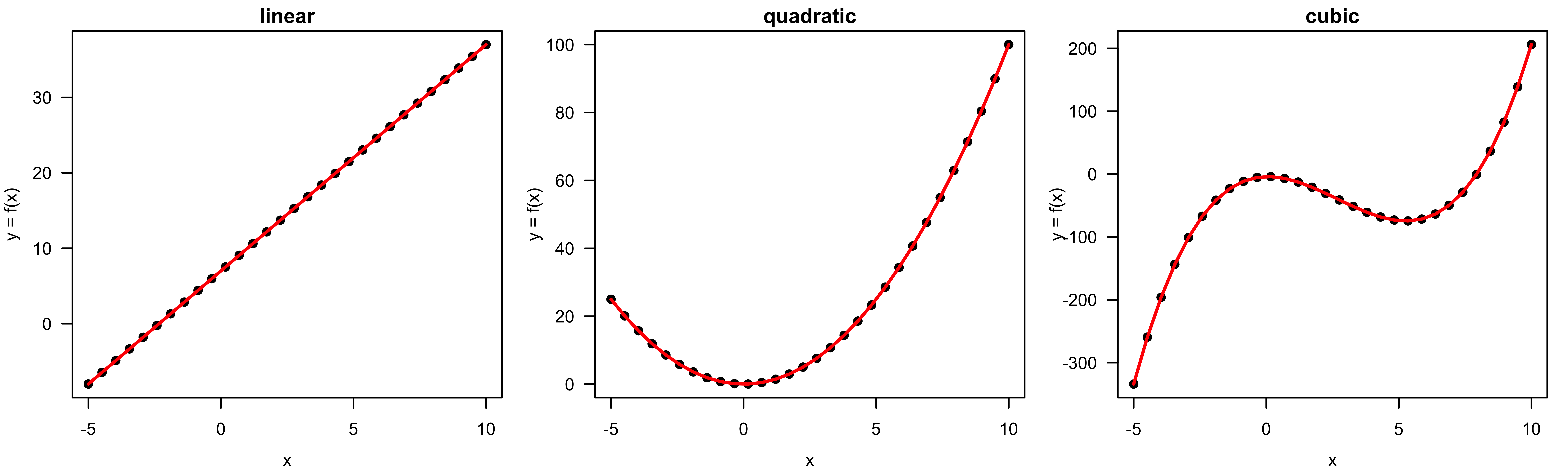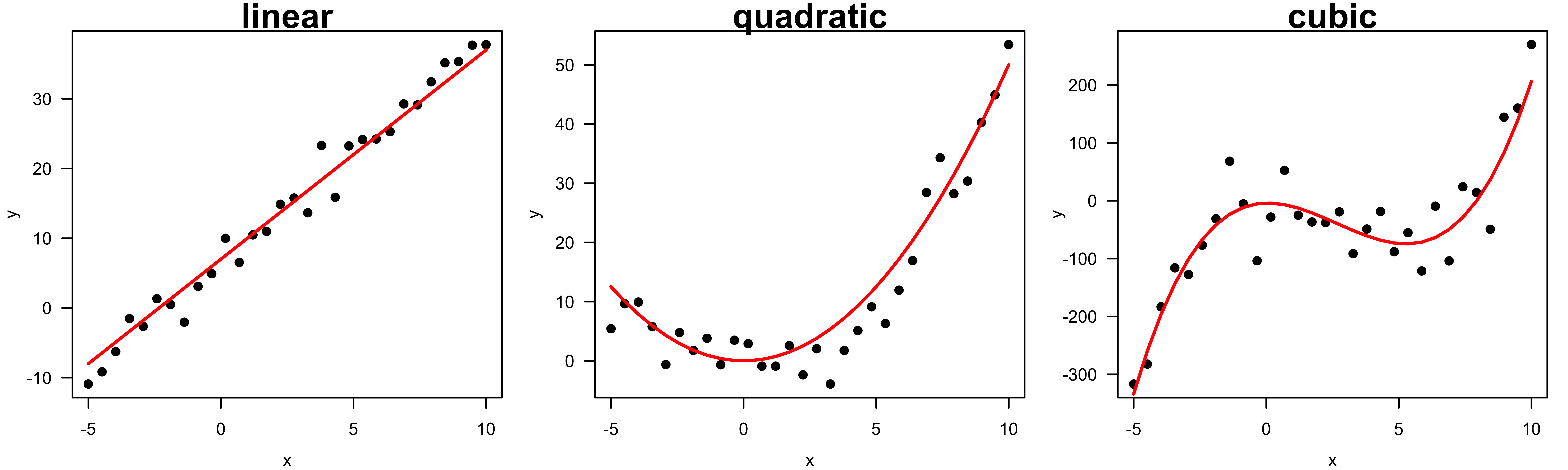 Model 2: Right-fitting y = \beta_0+\beta_1x+ \beta_2x^2 + \epsilon