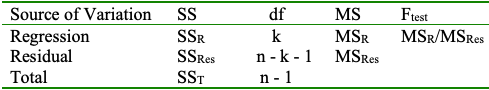 Reject \(H_0\) if \(F_{test} > F_{\alpha, k, n - k - 1}\).