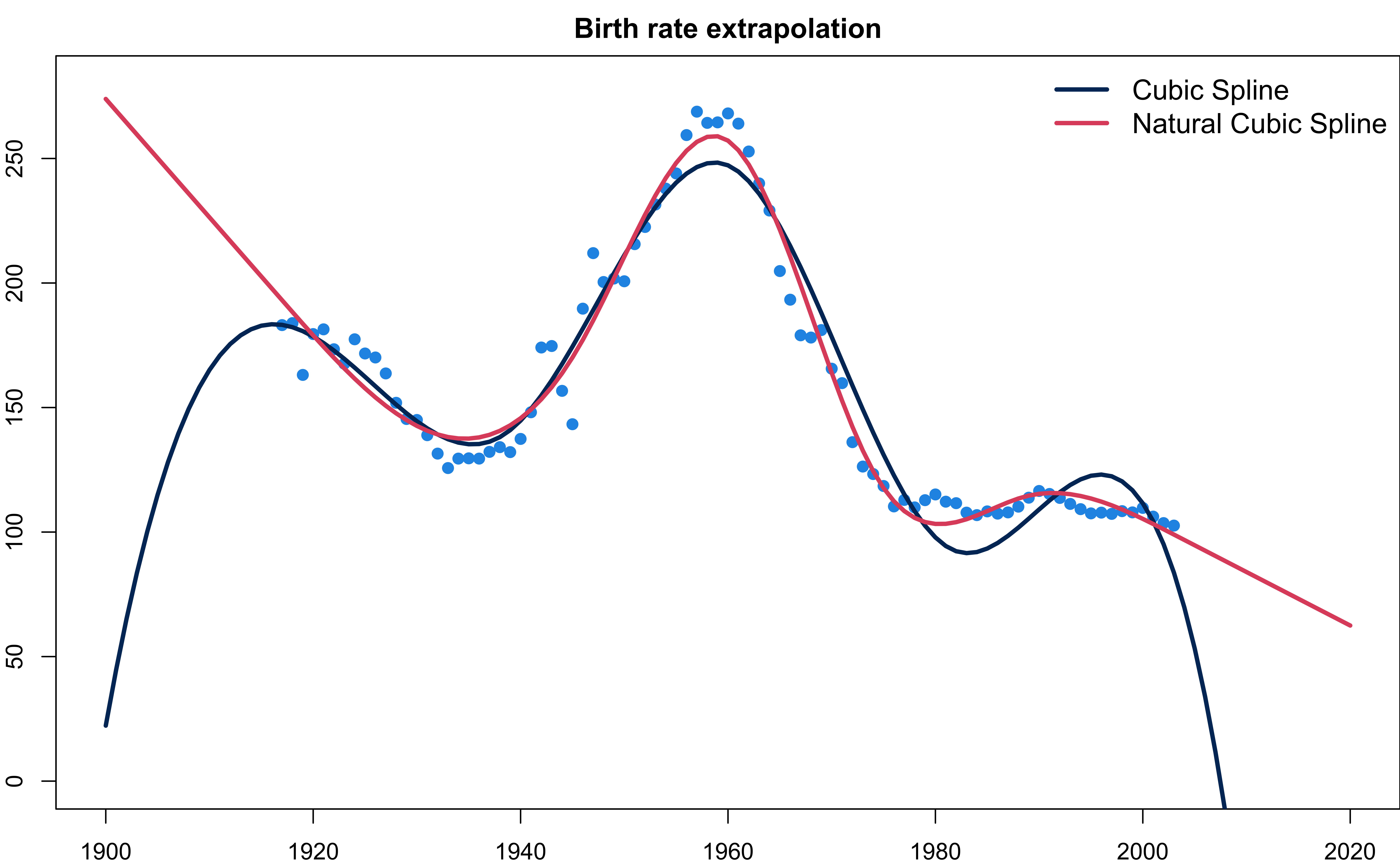 bs(), ns())Our goal is inference or curve fitting rather than out of range prediction or forecasting.