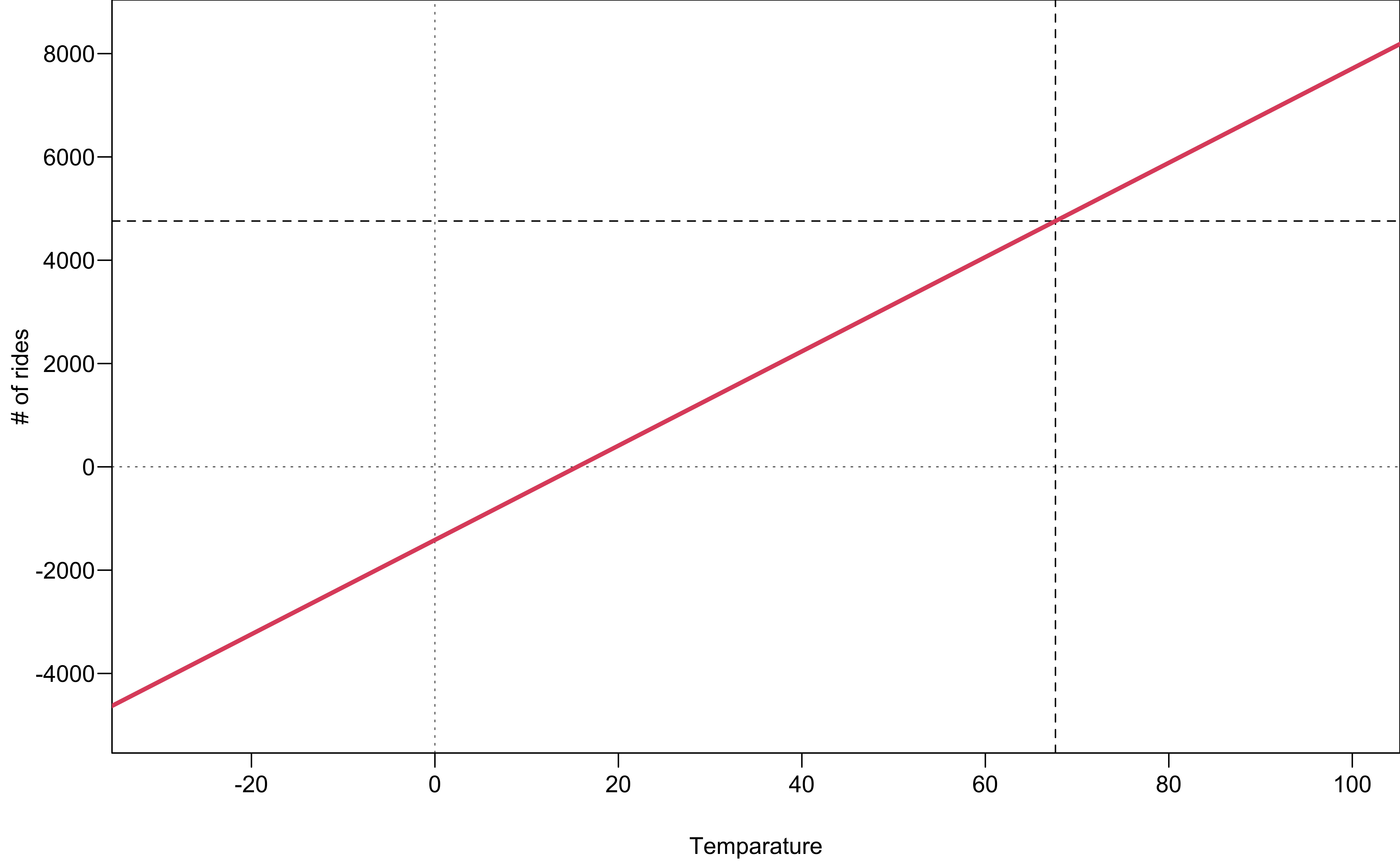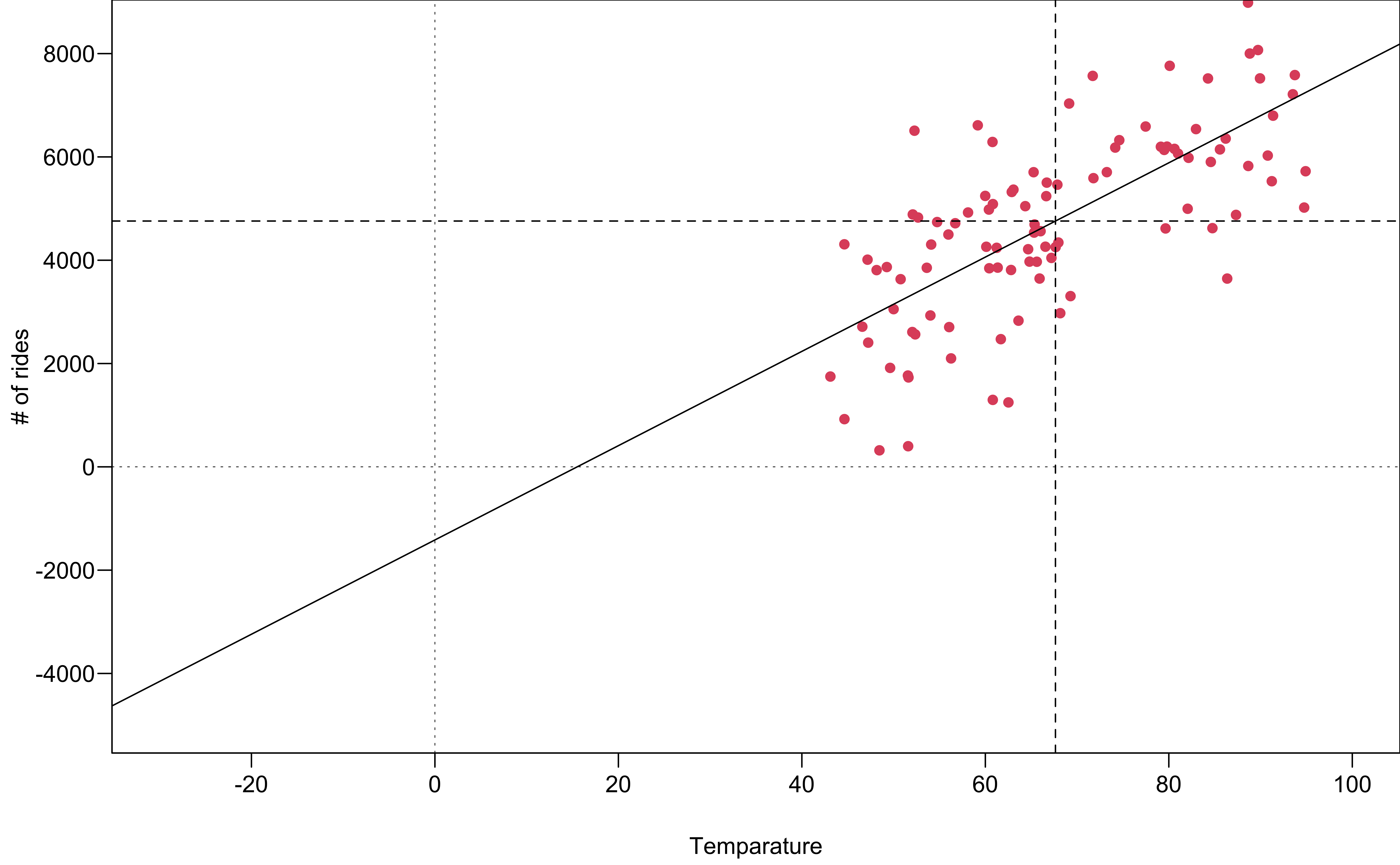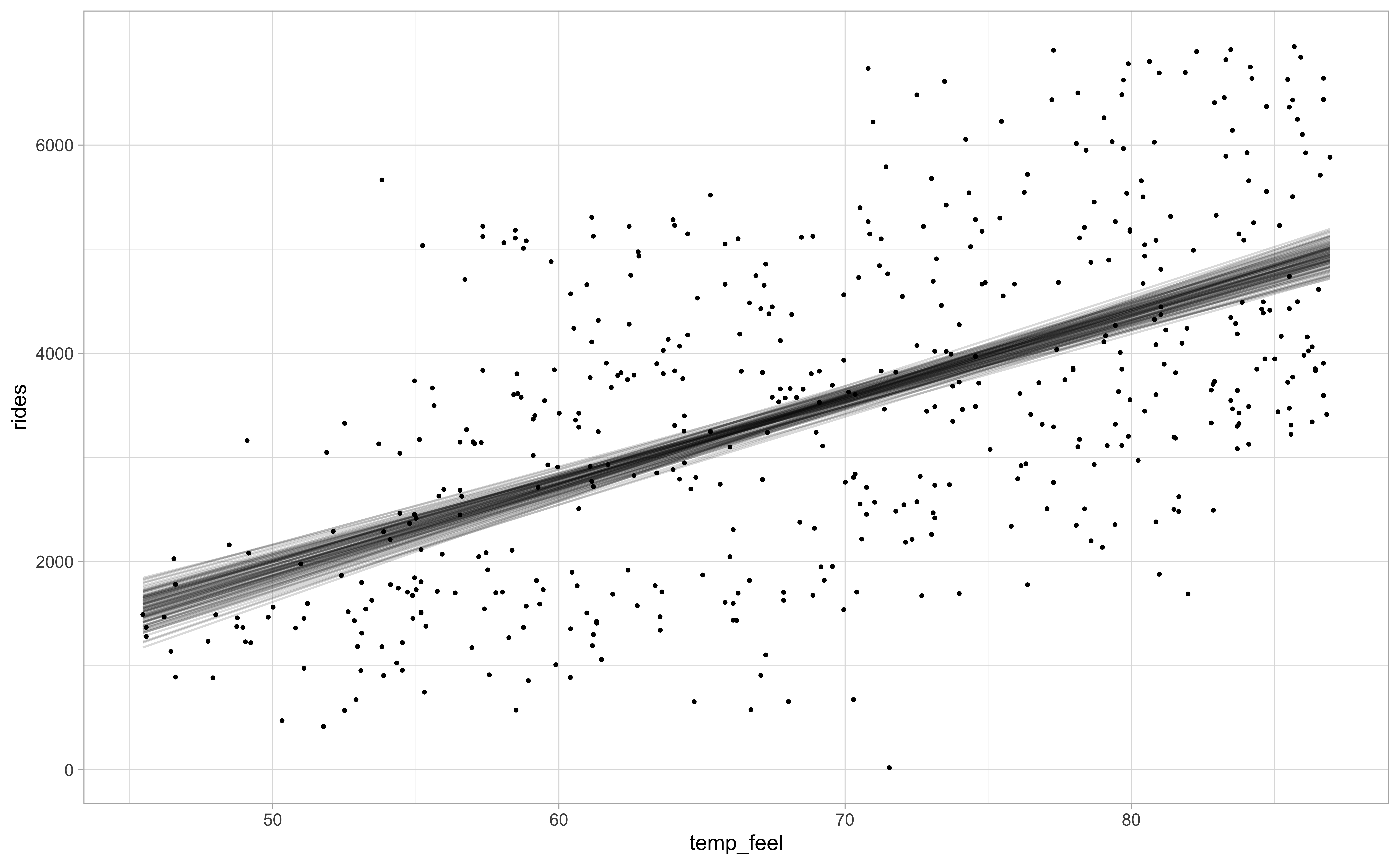 Update our prior understanding of the relationship between ridership and temperature using data information provided by likelihood.