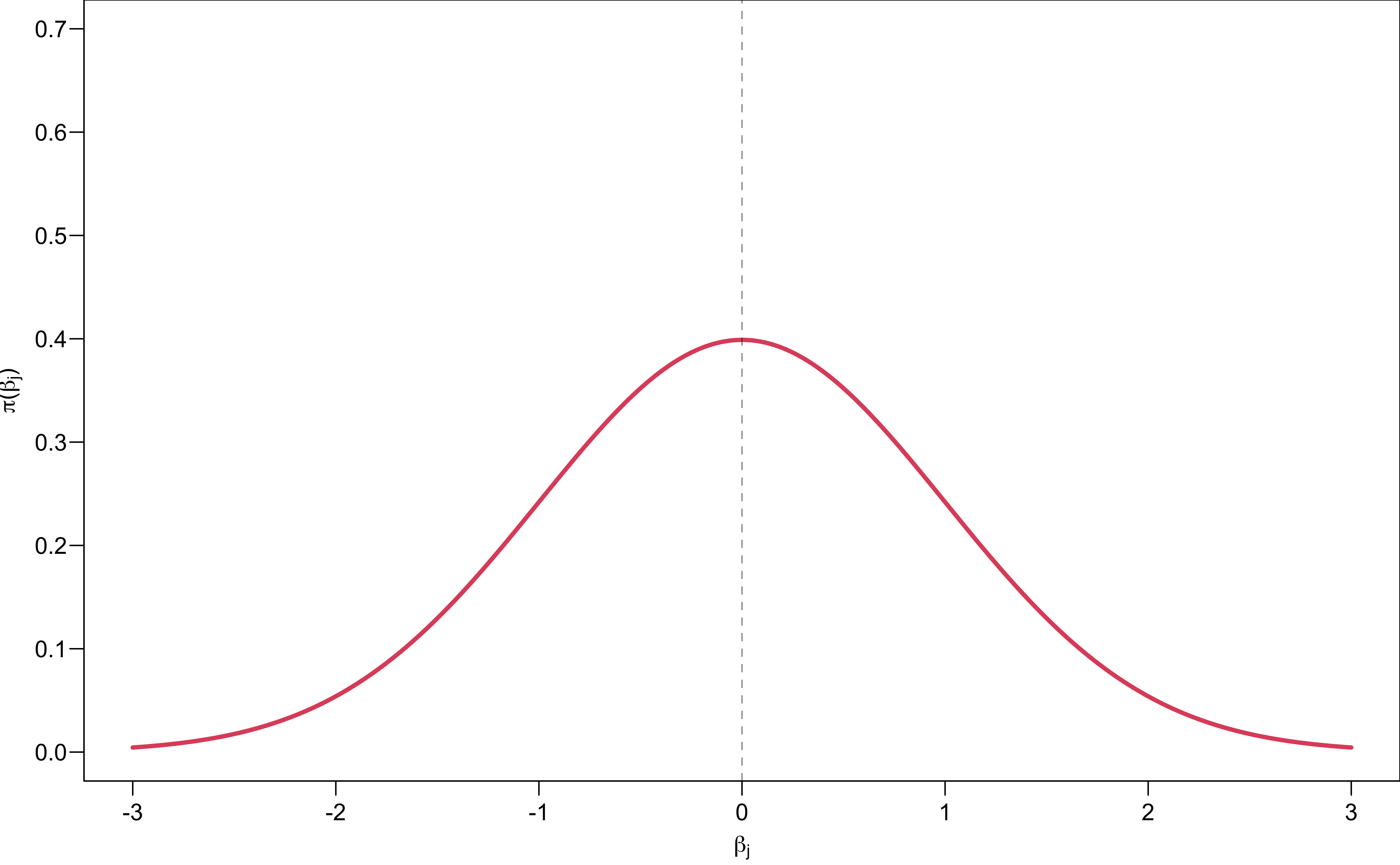 \[\beta_j \stackrel{iid}{\sim} N\left(0, \tau(\lambda)\right)\]