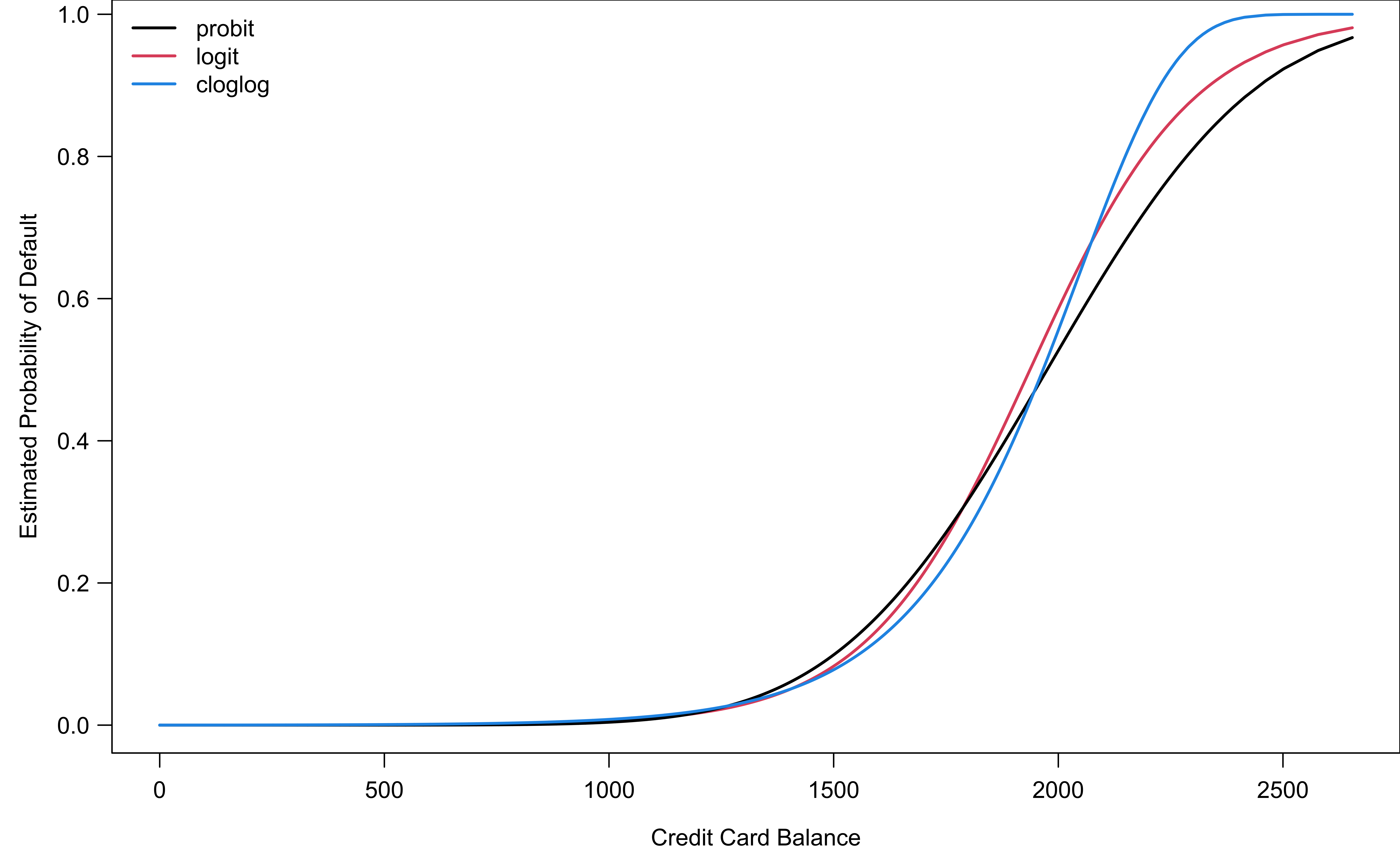 | cloglog | \(\log\left( -\log(1-\pi)\right)\) |